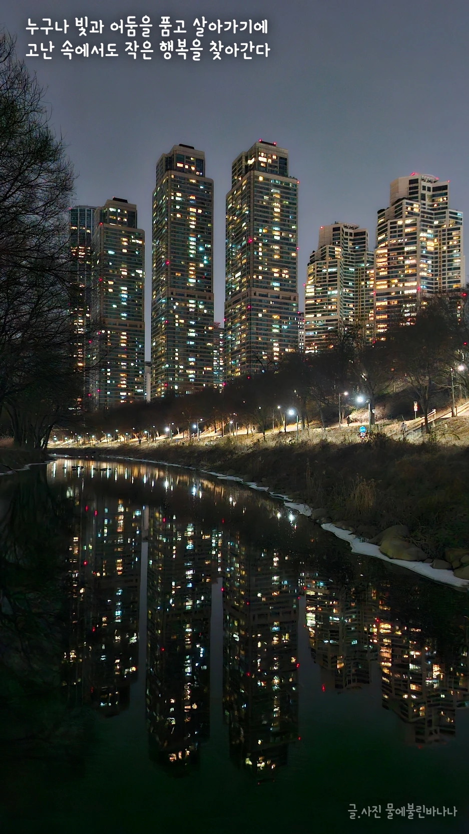여하튼 양재천에 비춘 주상복합 아파트의 모습은