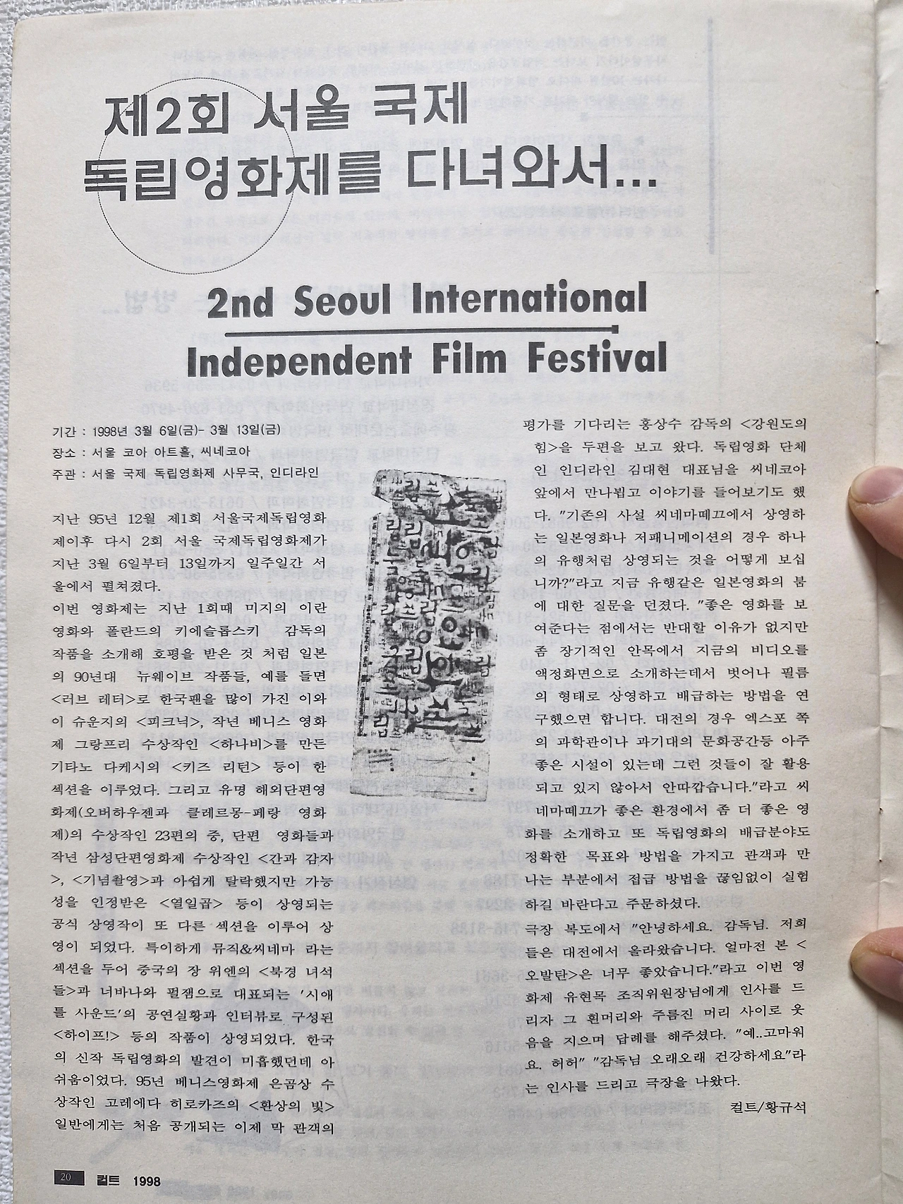 1998년 3월 6일 ~ 3월 13일(서울 코아 아트홀, 시네코아)