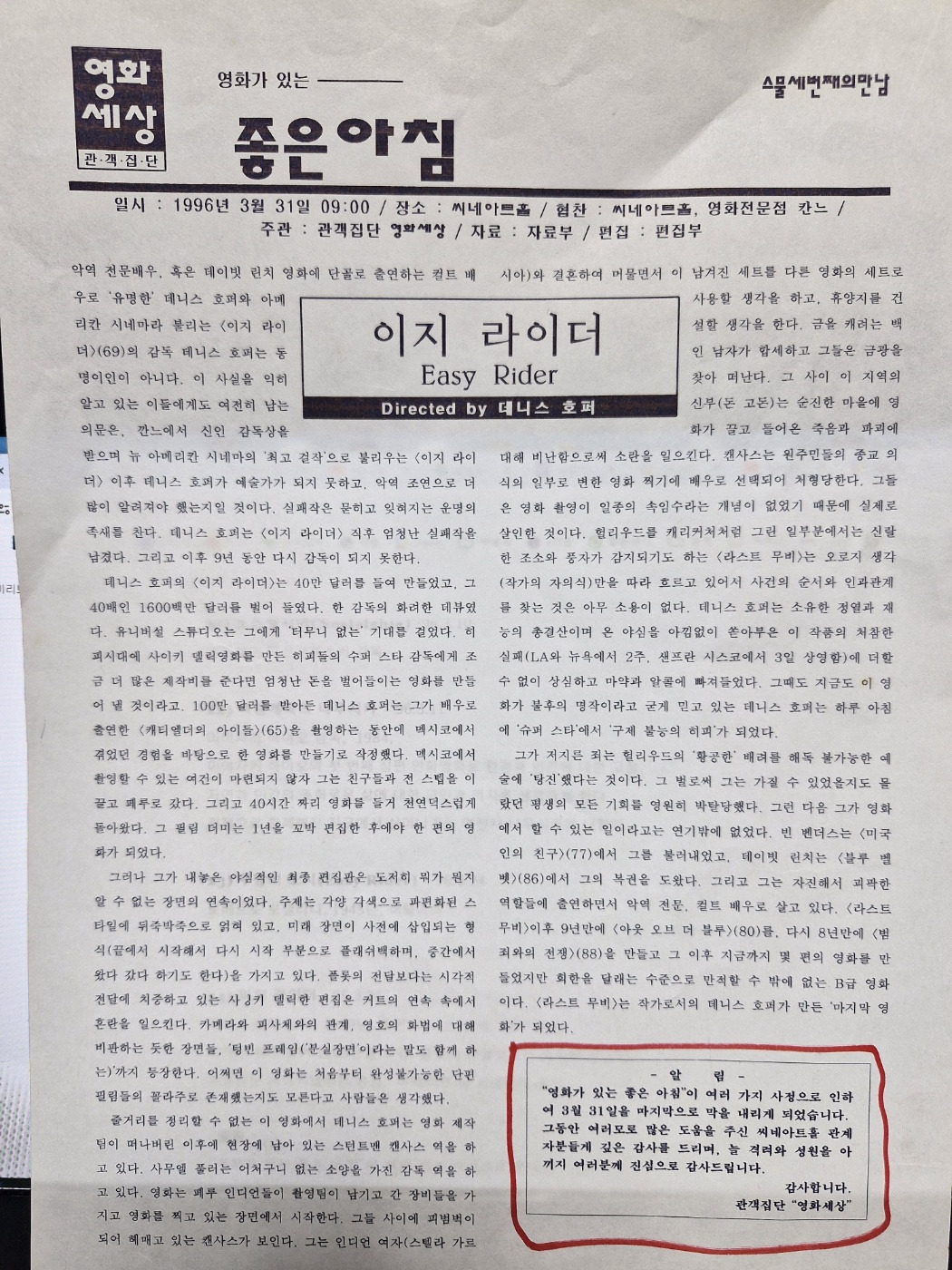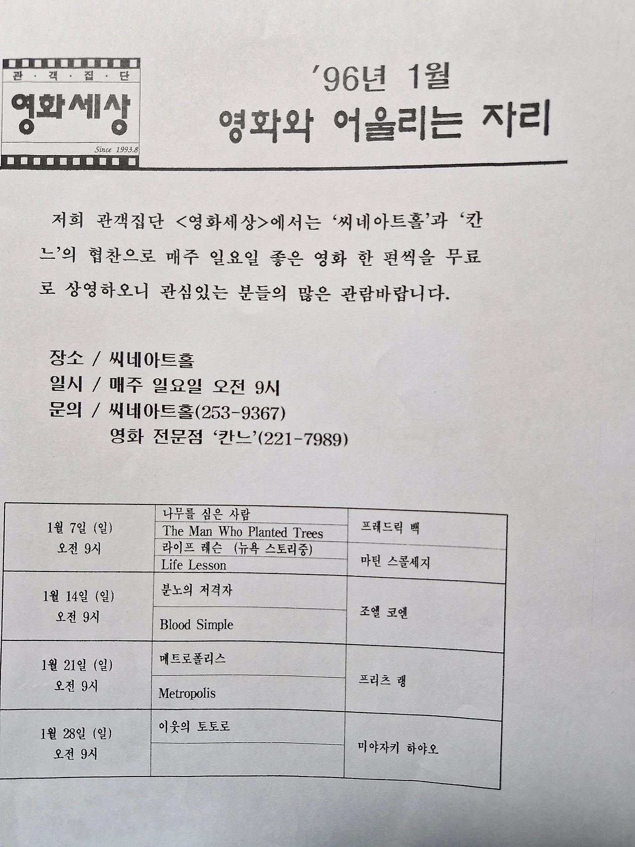 2. [영화가 있어 좋은 아침] 씨네아트홀에서