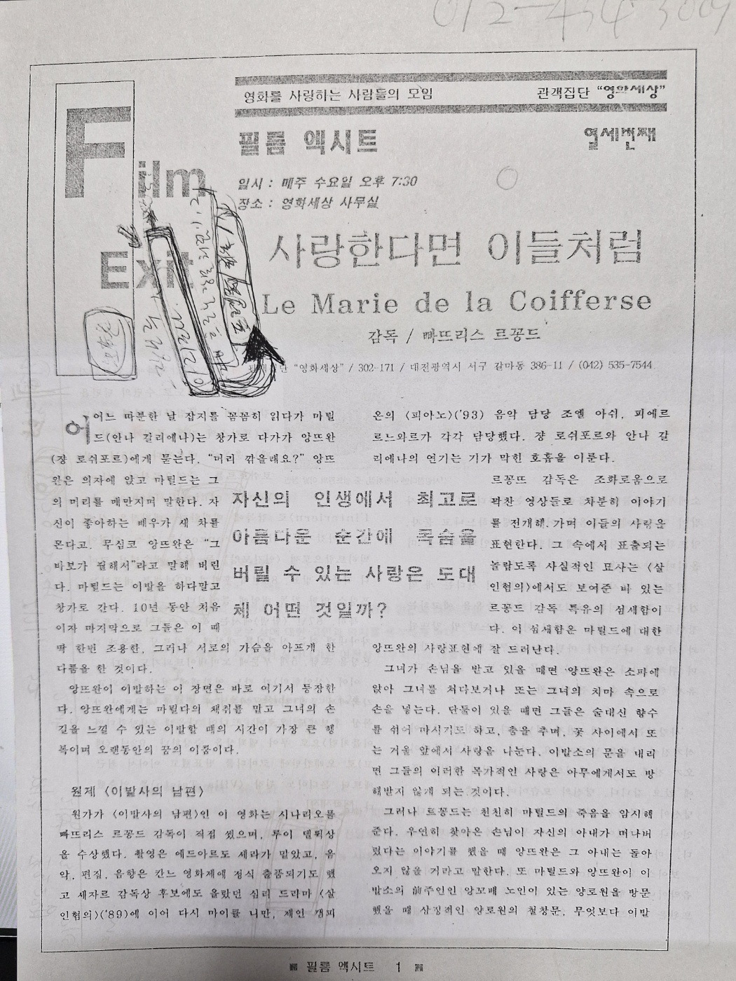 3. [필름 EXIT]는 매주 수요일 밤 갈마동 사무실