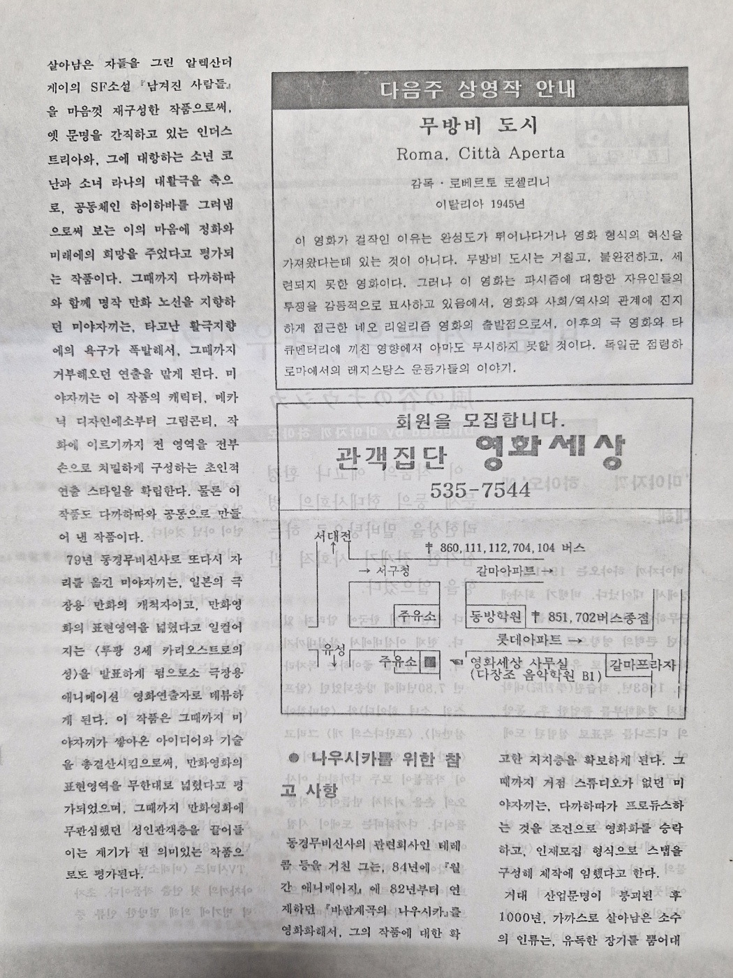 응답하라! <영화세상, 대전 시네마테크 컬트>