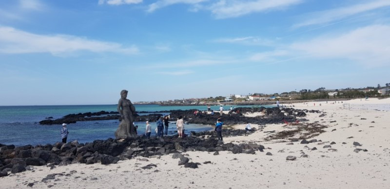 하얀 모래가 인상적인 곽지해수욕장으로 옮겼다.