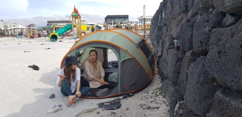 해변 모래 위에 원터치 텐트를 펴고 또 멍때리기다.