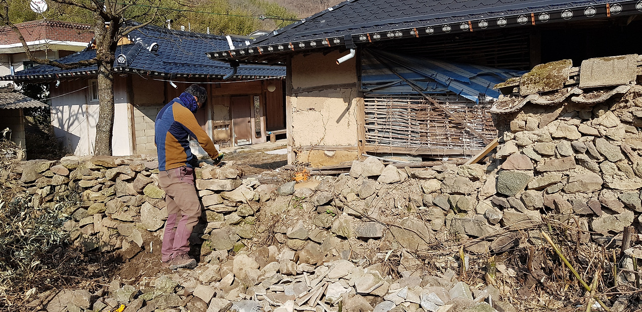 건설업을 하는 동서는 무너진 돌담을 아주 멋들어지게 복원했다.