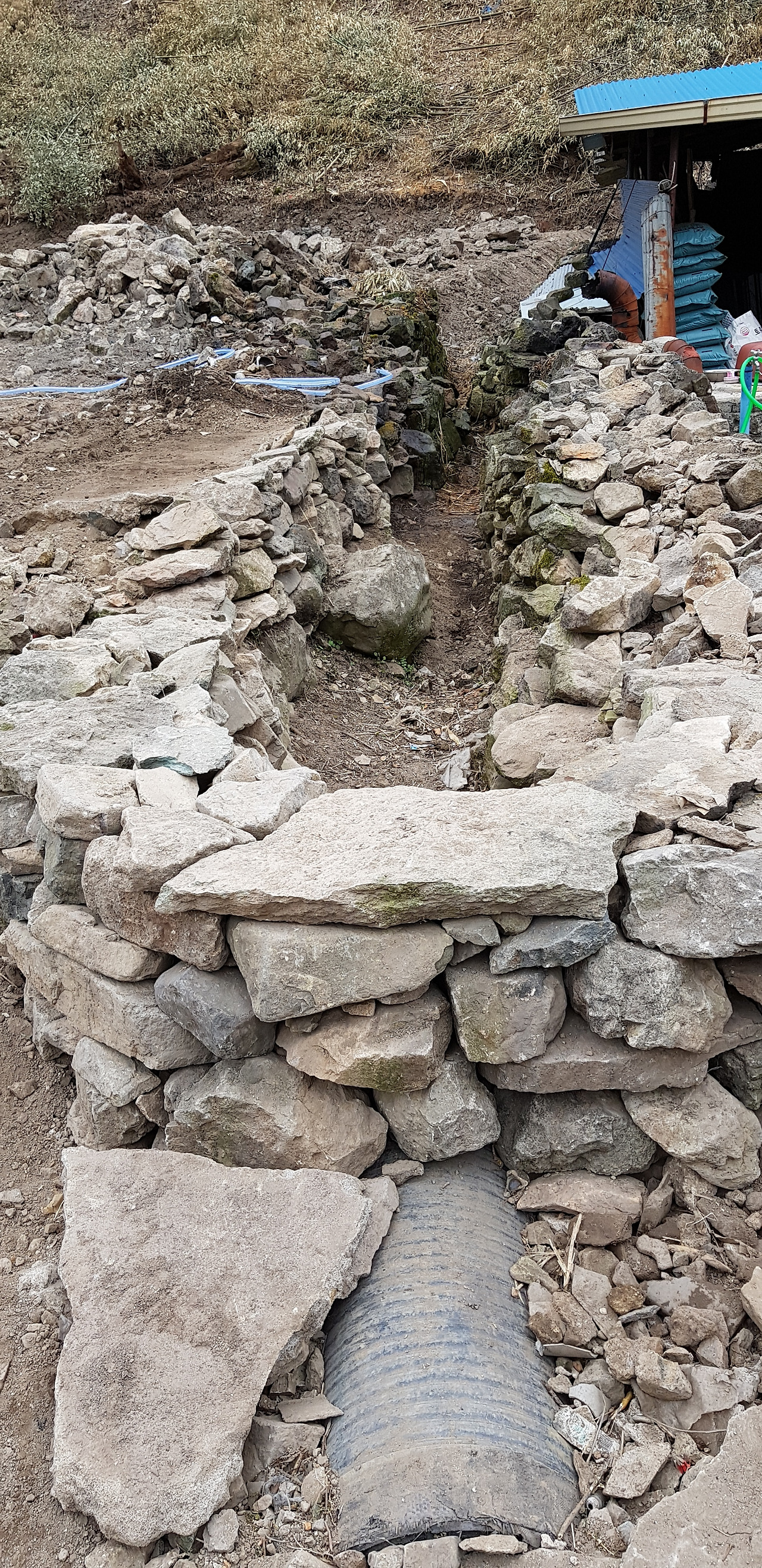 첫째, 산비탈 경계와 무너진 수로의 돌담을 쌓는 것.