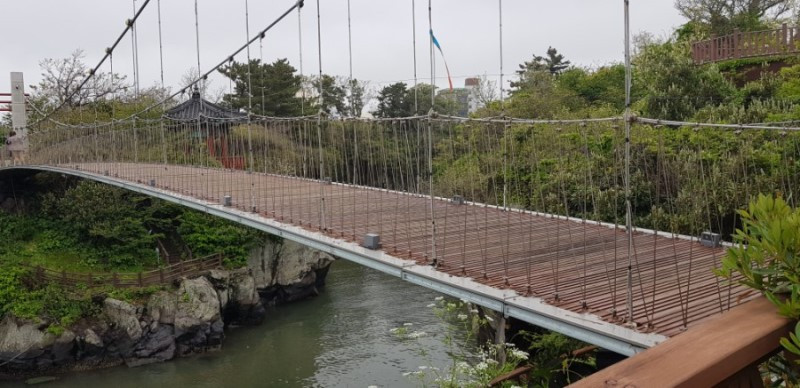용연 구름다리를 건너 주변 하천 절벽이 볼거리다.