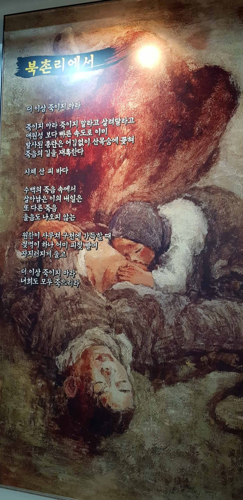 엄마 주검 위에 배가 고파 젖무덤을 찾은 애기의 모습을 증언을 통해 그렸다.
