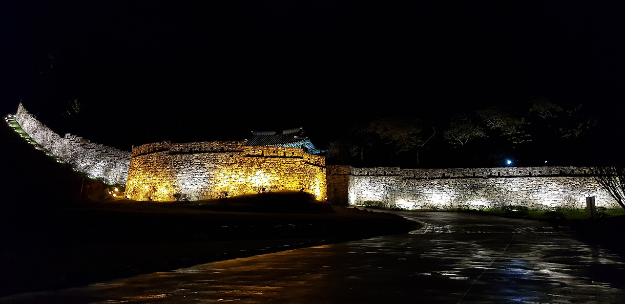 밤에 보는 고창읍성은 또 다른 맛을 자아냈다 은은하게 비추는 불빛에 산성은 그윽함으로 다가왔다. 여인네의 한복 치마 끝자락을 두른 듯 얕은 산자락에 드리워진 곡선은 자연스럽게 흘렀다. 고창읍성의 주경과 야경을 모두 보는 볼 수 있는 것은 칸티만의 매력이다.