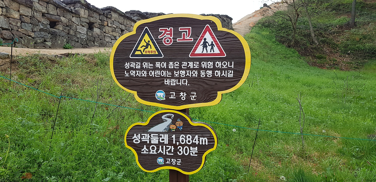 고창읍성은 조선 단종 원년(1453년)에 왜침(倭侵)을 막기 위해 만든 자연석 성곽이다. 고창 지역은 모량부리, 모양현이라고 해서 일명 모양성(牟陽城)이라고도 한다. 성곽은 길이 1,684미터로 높이 4~6미터다. 고창읍성은 '한국의 아름다운 길 100선'어도 뽑힌 길이다. 약 30분 코스지만 실제로 여기저기 둘러보며 사진도 찍다보니 한 시간 삼십 분이 걸렀다.