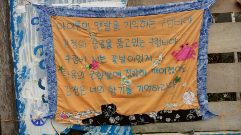 강정마을에 다다르자 10여 년간 이어진 해군기지 건설로 인한 주민의 아픔이 고스란히 전해져왔다. 북멘토에서 발간한 '그대 강정'을 보면 미국과 중국의 등쌀에 강정 주민이 피해를 본 해군기지 건설에 대한 내용이 자세히 나와 있다. 펜이 블로그의 책 리뷰를 보면 이해가 더 쉽다.(https://m.blog.naver.com/ksgil39/220819322940)