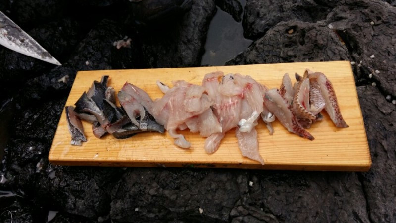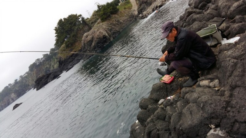 올레를 걷다 월평마을 거의 다 와서 낚시꾼들을 발견했다. 그래서 곧바로 큰 돌들 사이사이로 다가갔다. 열심히 낚시 중이다. 갓 잡은 고기를 손질하는 사람. 이래라저래라 지휘하는 사람. 70대 세 분은 제주 현지인으로 친구 사이였다. 회를 손질하시는 분이 어디에서 왔냐?, 뭐 하러 다니느냐? 등등 시시콜콜에 자연스레 대화의 친구가 되었다. 그 덕에 싱싱한 벵에돔, 자리돔회와 탕까지 얻어먹는 호사를 누렸다. 거기다 반주까지ㅎㅎ 오늘 점심은 이걸로 대만족이다.