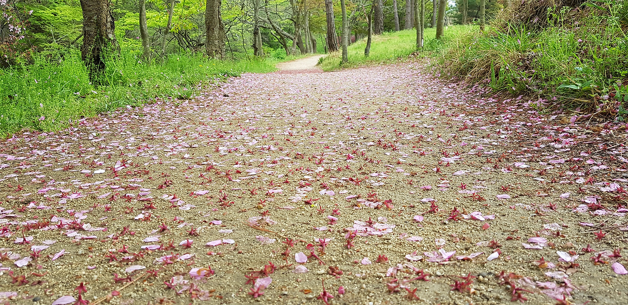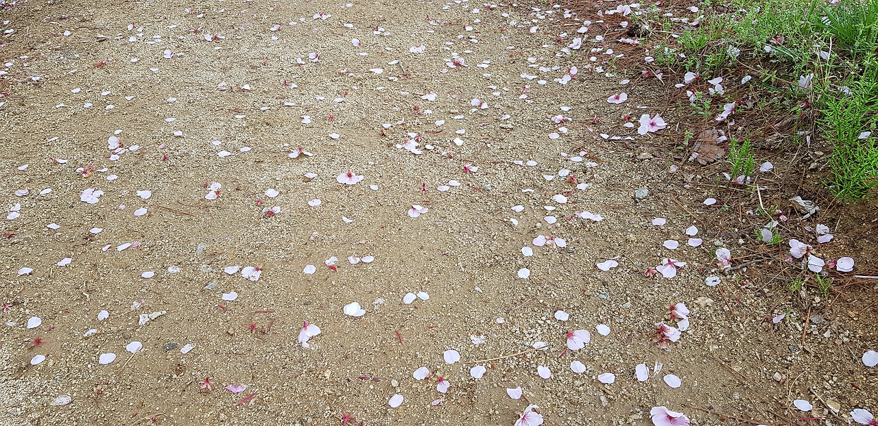 며칠 전만 해도 뭇사람의 사랑을 받았을 벚꽃잎이 땅을 수놓았다. 나름 운치 있어 참 좋다. '가시는 걸음걸음 놓인 그 꽃을 사뿐히 즈려 밟고 가시옵소서'라는 김소월님의 진달래꽃 시가 생각나는 길이다. 그럼 사뿐히 즈려 밟아볼까나...