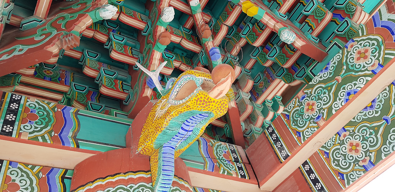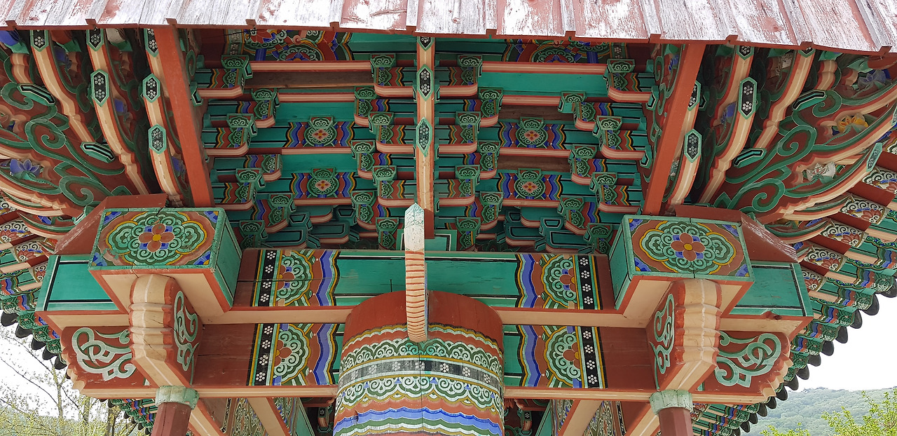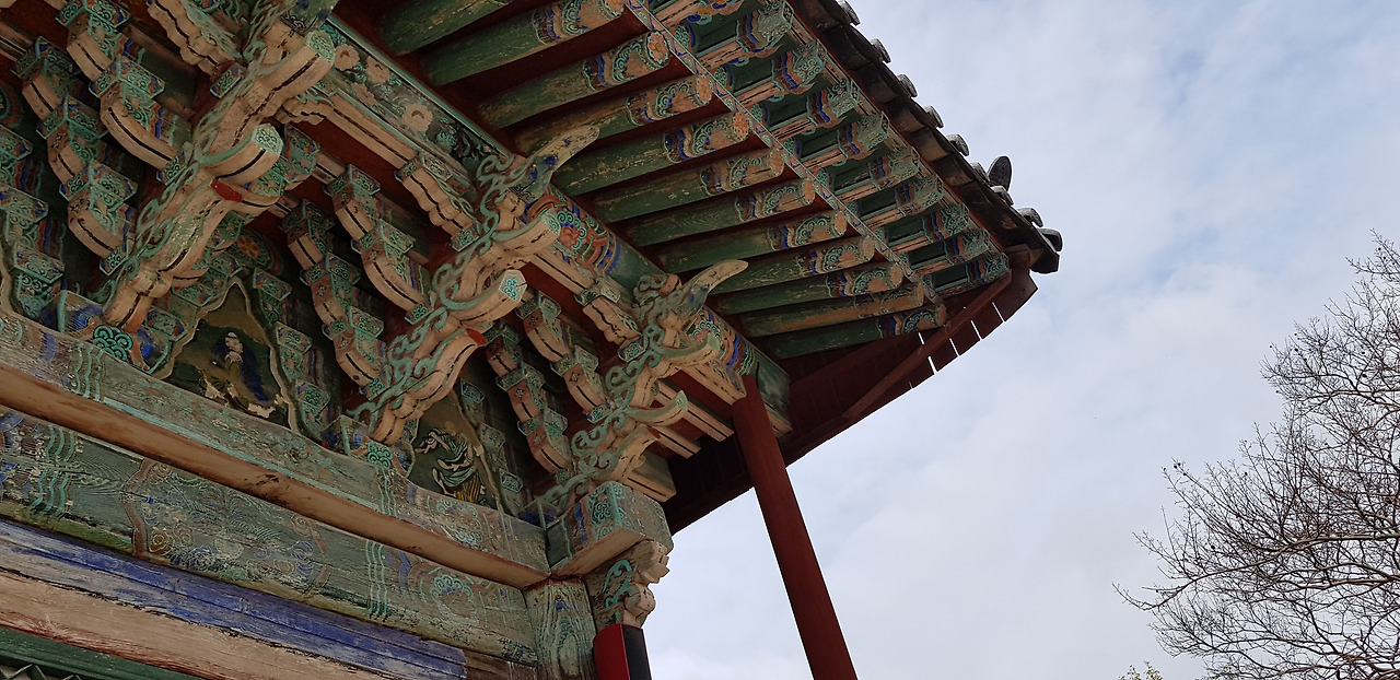 선운사 일주문이다. 기둥이 일직선 한 줄로 세워졌다 해서 일주문이다. 절에 가면 제일 먼저 만나는 건축물이다. 문양이 화려하다.