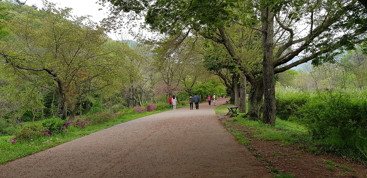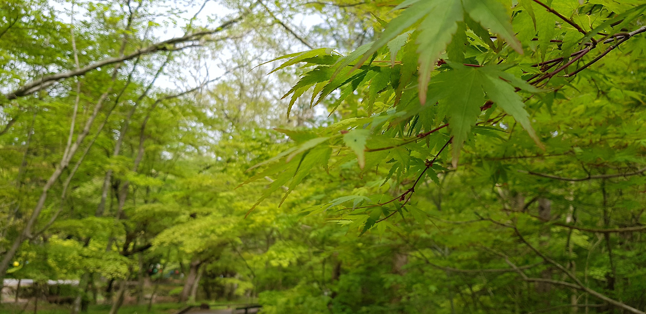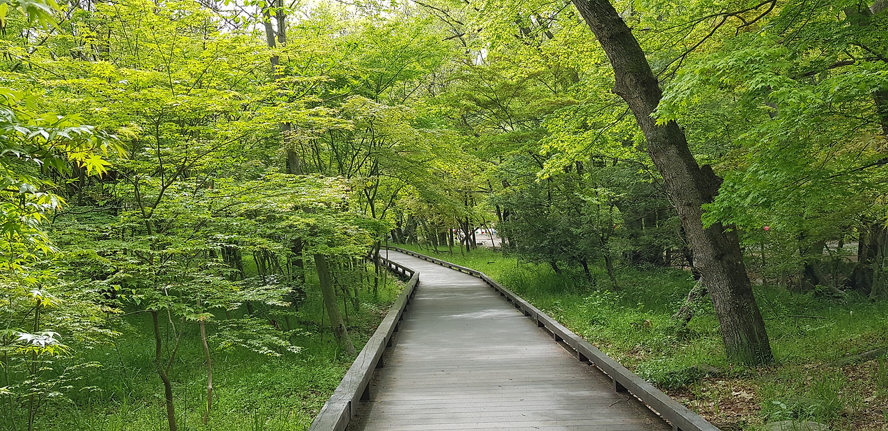 양 길가에 녹음이 제대로 내려앉아 산책하기에 더할 나위 없다. 보드라운 연녹색에 시선을 빼앗기는 또 얼마만인가...