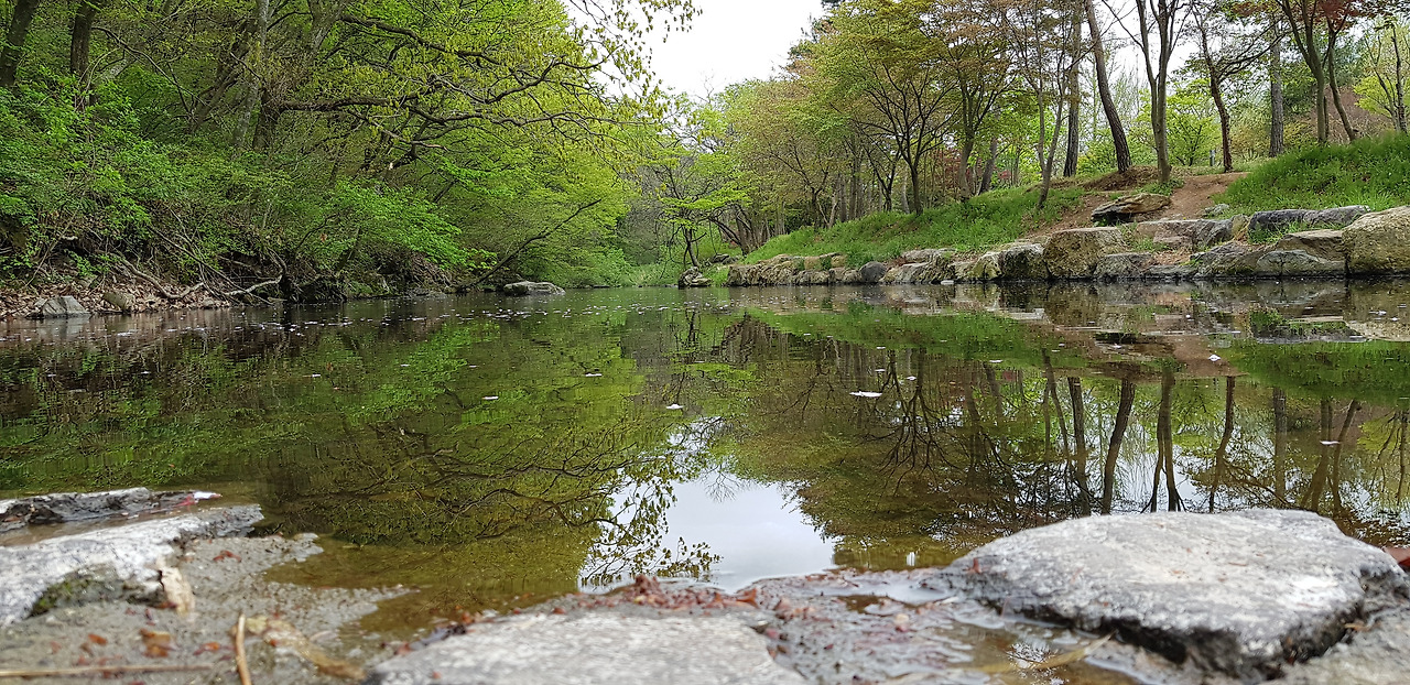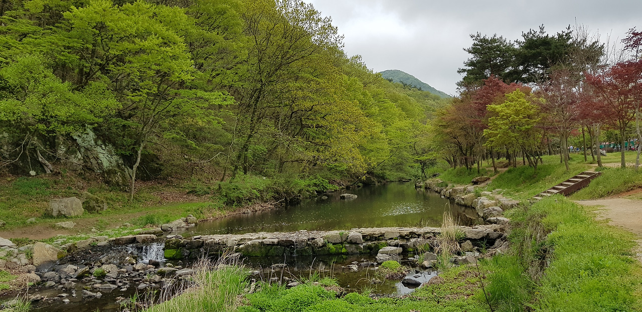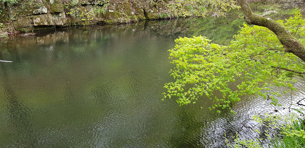 도솔천에 떨어진 나뭇잎과 물 그림자의 반영이 멋지다고 하는데 날씨가 흐려 그림이 나오지 않았다. 실력 없는 사람이 연장 탓만 한다더니 딱 그 꼴이다.