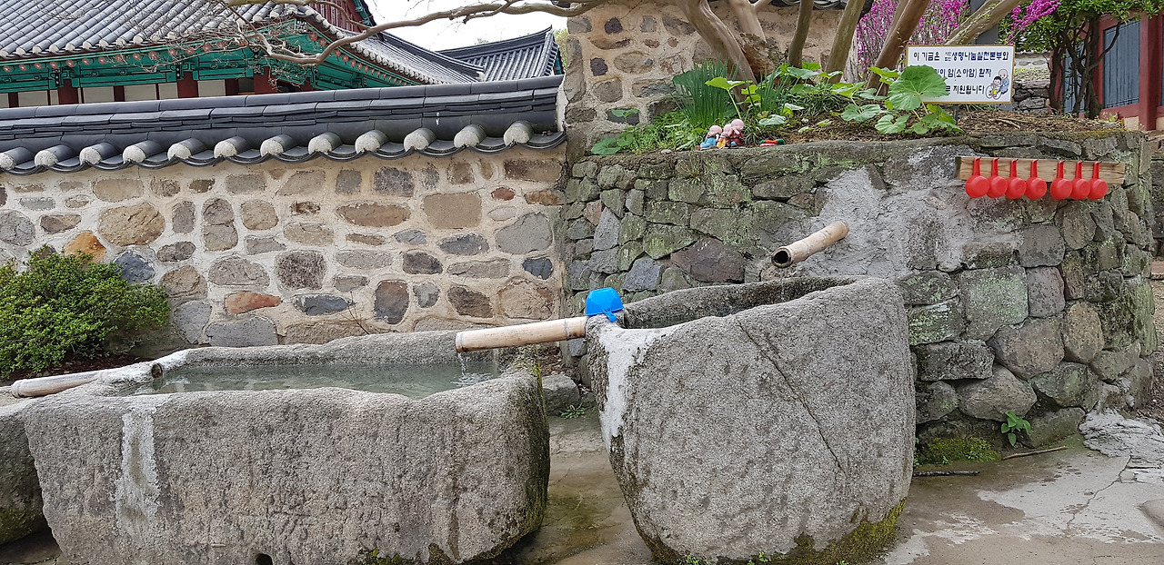 영산전 목조삼존불상 약수터, 산사를 처음 돌 때 한 모금, 한 바퀴 돌고 나서 또 한 모금 목을 축이기에 딱 좋다.