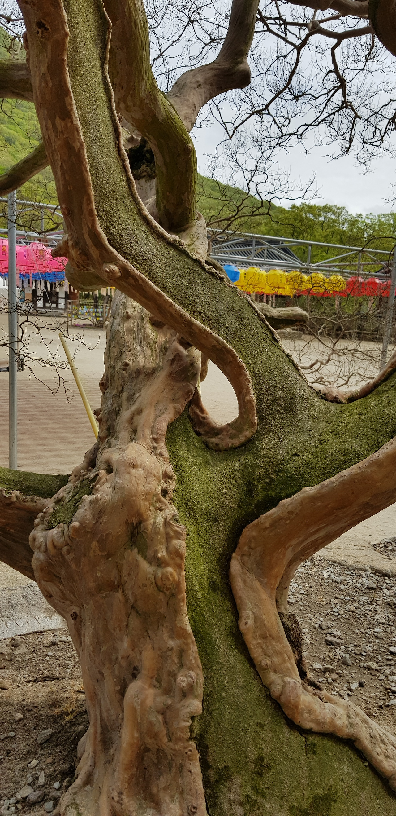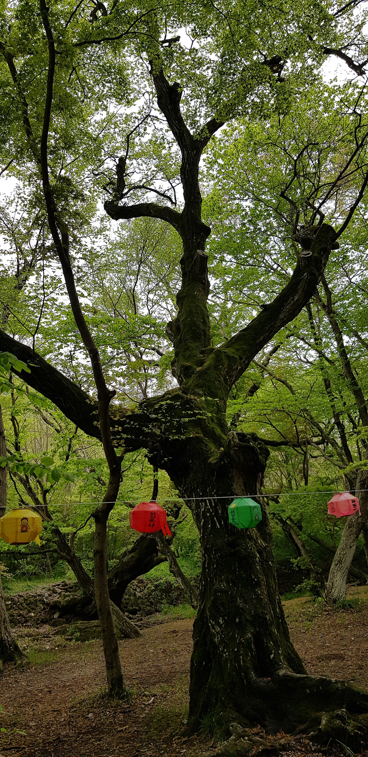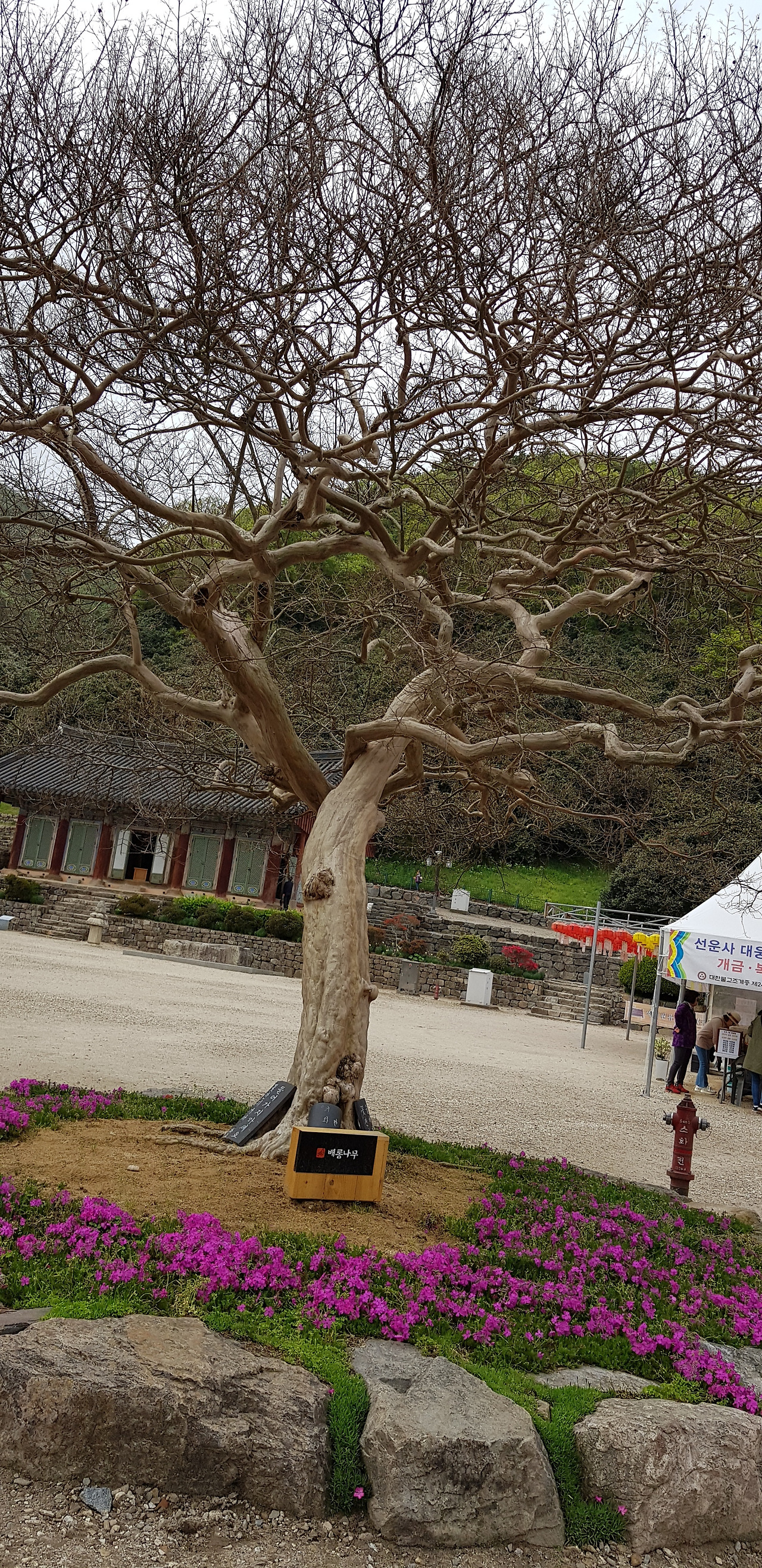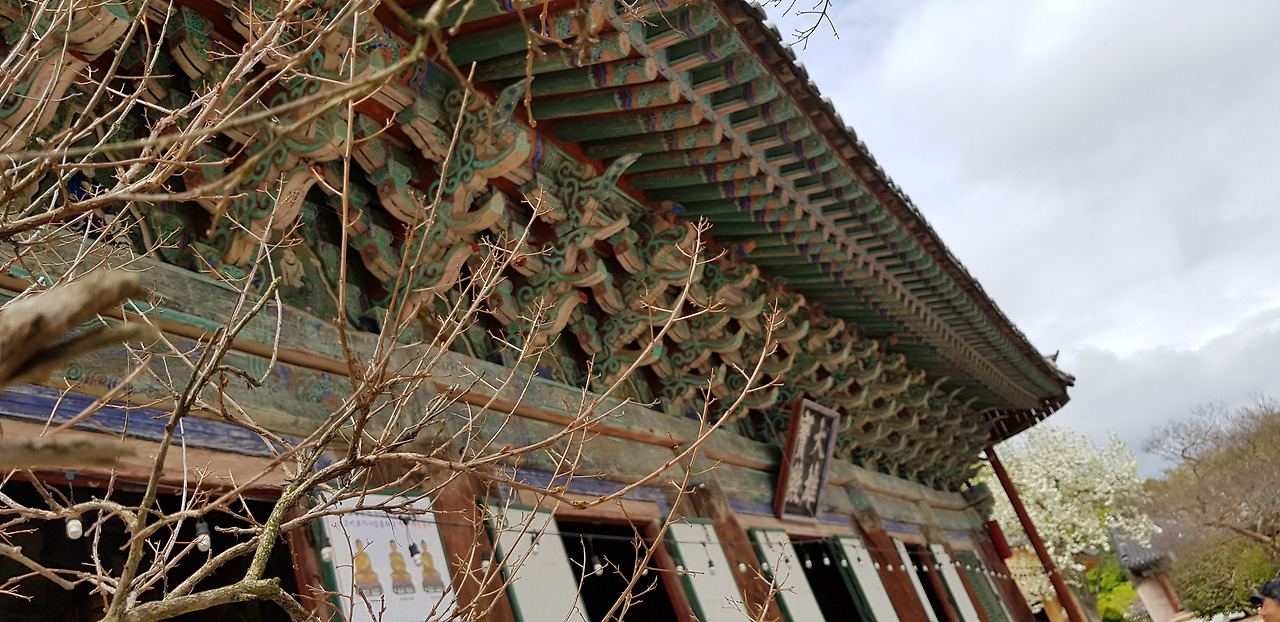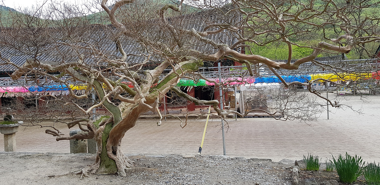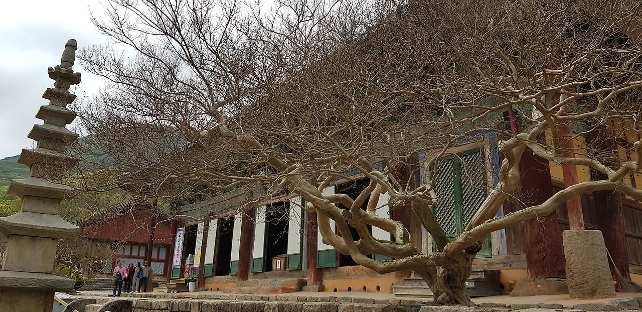 대웅전 좌우에 두 그루가 있다. 세월의 무게를 알 수 있다.