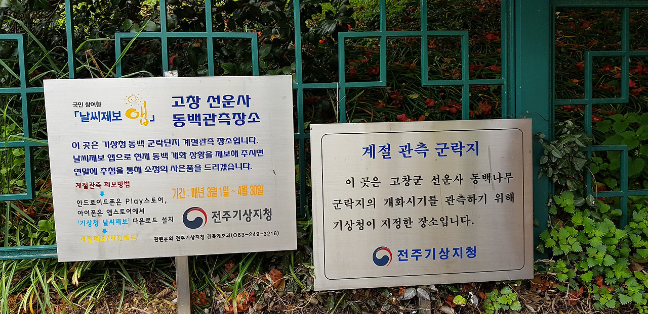 선운사 뒤편에는 약 2천 그루의 동백나무가 천연기념물로 지정되어 있다. 기상청에서 개화시기를 관찰하기 위해 관측지로 지정했다.