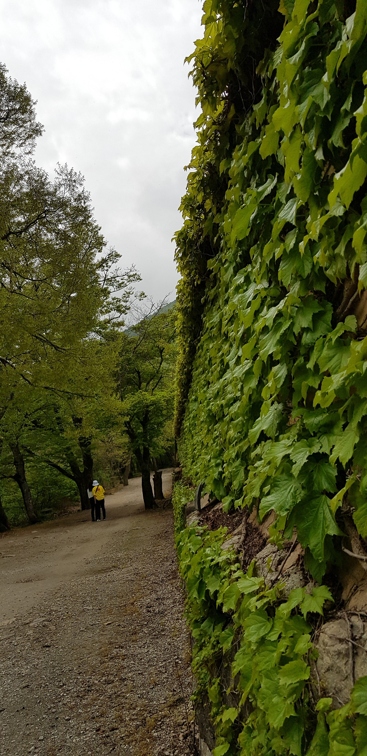 주차장에서 도솔천이라 불리는 선암천을 따라 선암사로 향하는 길은 힐링의 공간이다. 세 번째 방문이지만 매번 감탄을 하곤 한다. 천연기념물로 지정된 '송악'이다. 멀리서 봤을 땐 별 감흥이 없었는데 징검다리를 건너서 보는 느낌은 전혀 달랐다. 지름 80cm에 키 15m로 절벽에 딱 붙어 자라는 모습에 생명의 강인함을 느낄 수 있었다. 송악이라 해서 소나무를 연상했는데 전혀 아니었다. 두릅나무과의 덩굴 식물이란다. 세월의 무게를 느낄 수 있다.
