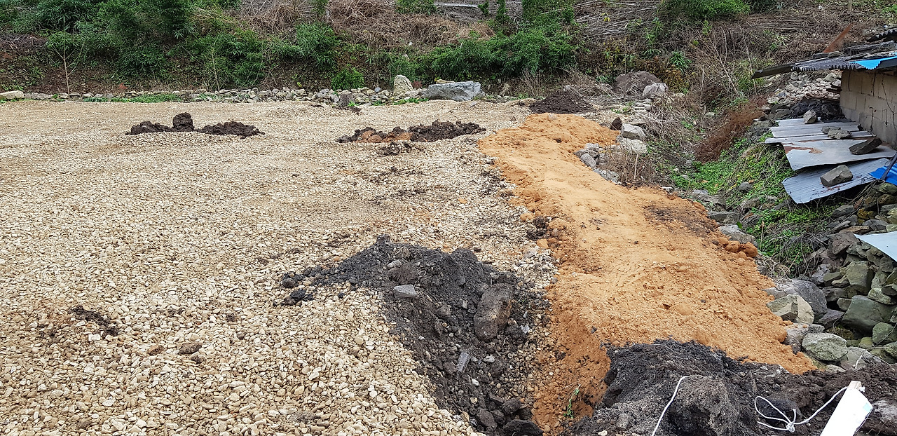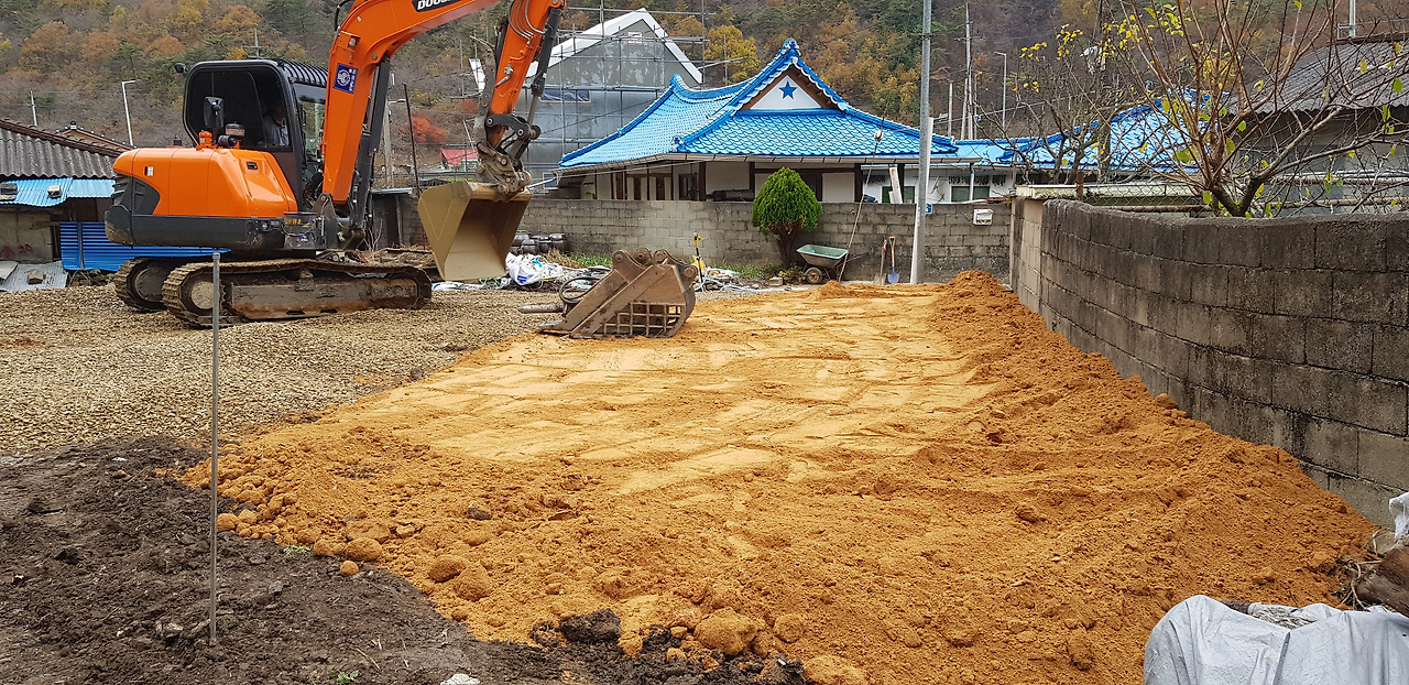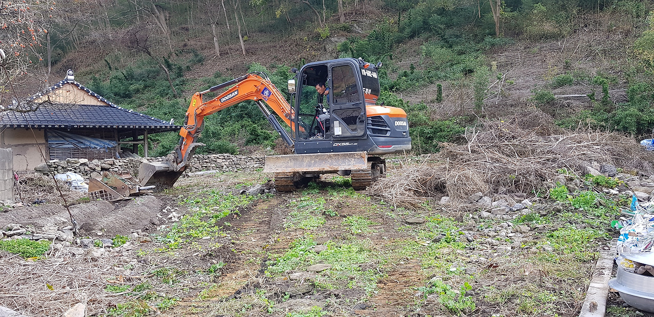 포클레인도 동원됐다. 6평 이동식 주택을 앉힐 자리에 터에서 나온 돌을 무더기로 쑤셔 박았다.