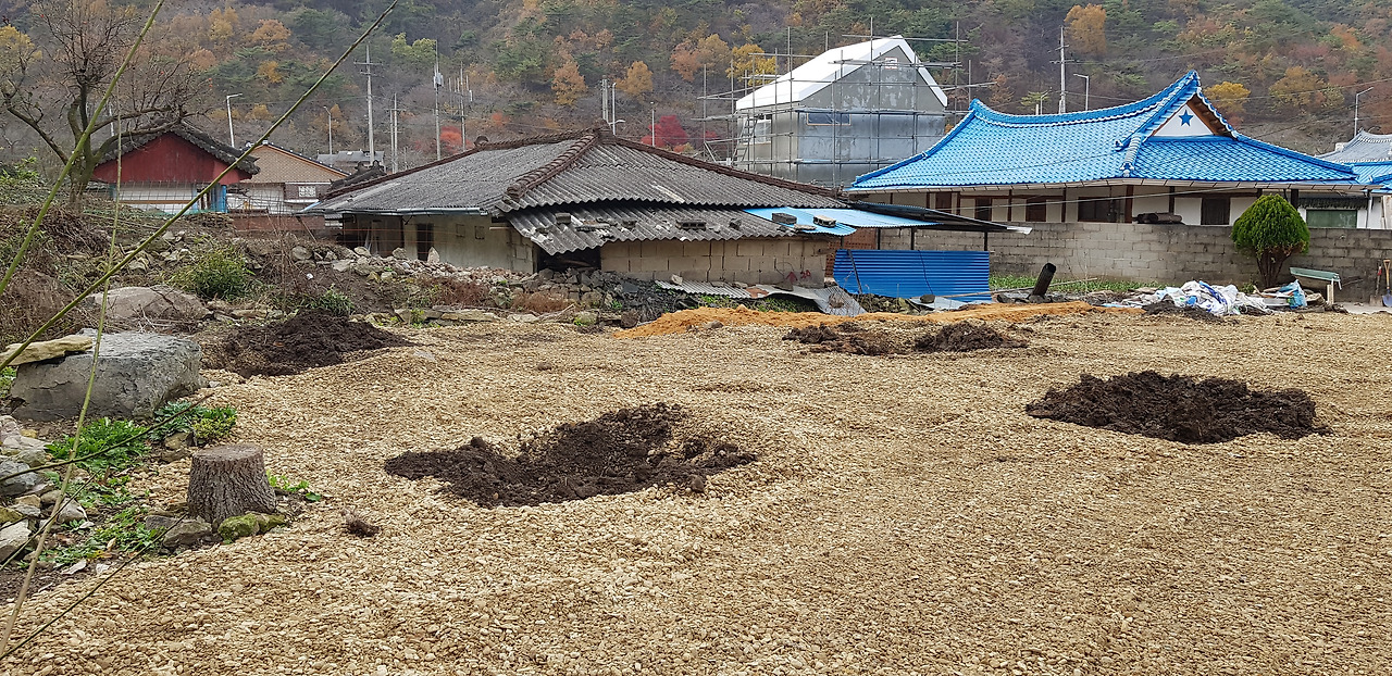 몇 군데 구덩이도 파놨다. 조경수나 유실수를 심기 위해서다. 설령 꽃밭을 만들더라도 자갈을 조금만 걷어내면 된다. 부지 너머 가을이 저만치 가고 있었다.