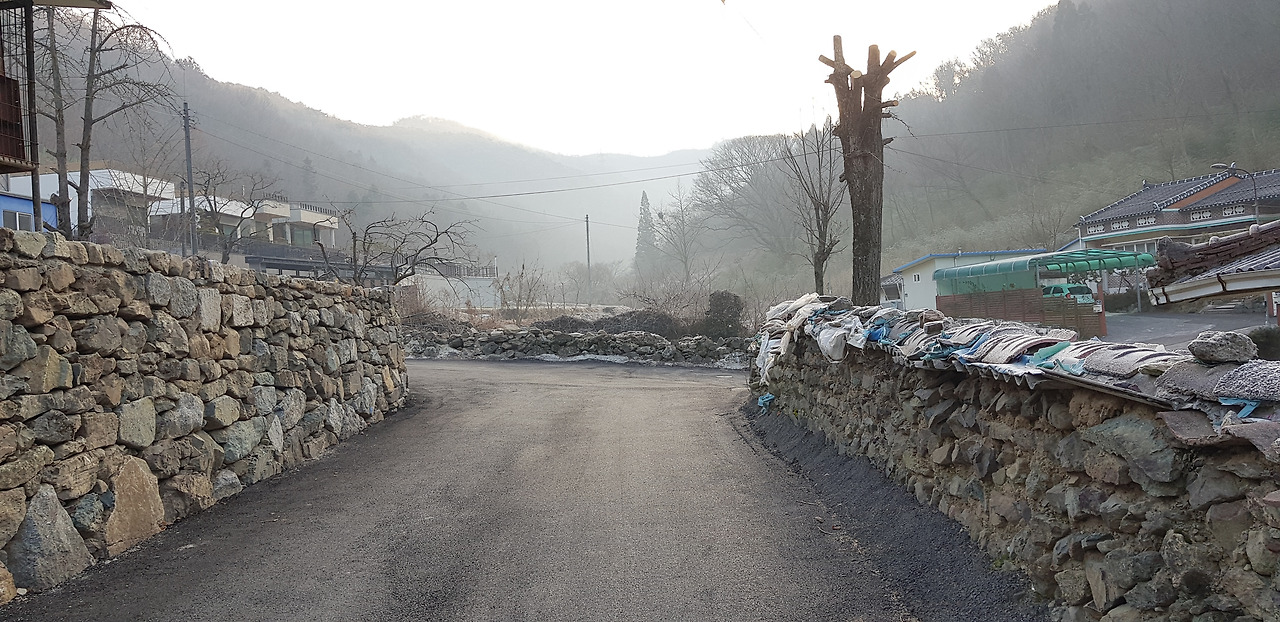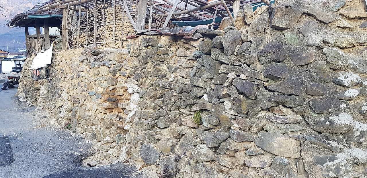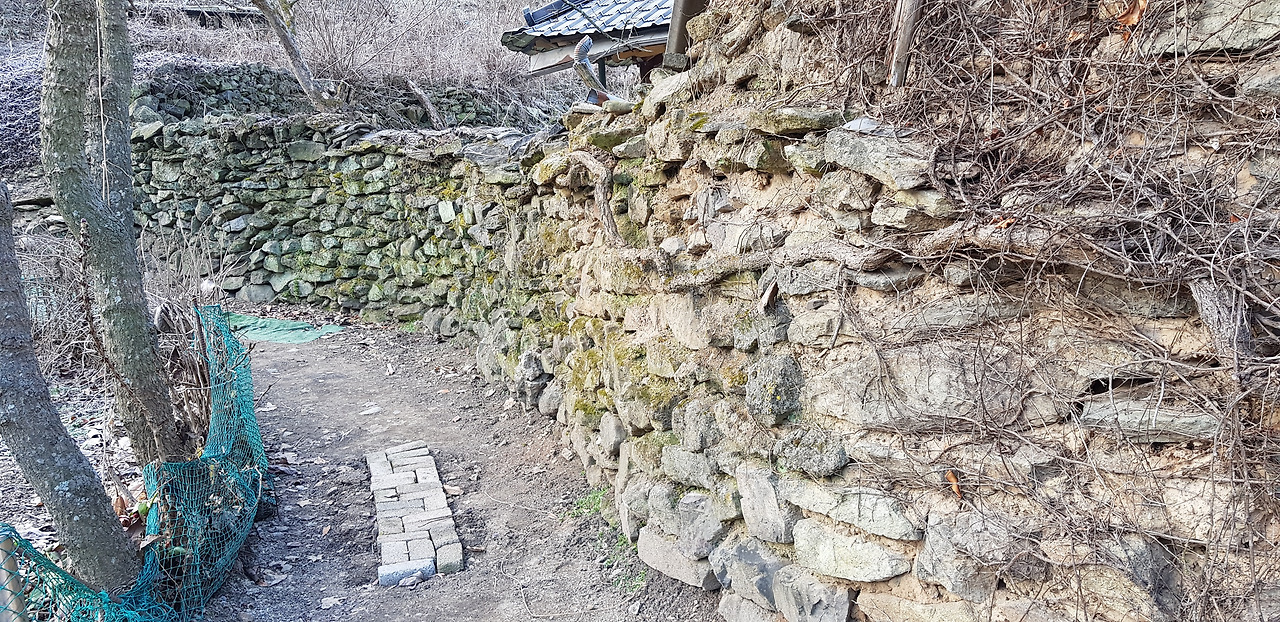 시골의 돌담길이 정겹습니다. 펜이는 도회지에서는 맛볼 수 없는 이런 풍경이 이쁘더라고요~ 아침이지만 시골이라 조용하네요. 추워서 모두가 구들장 짊어지고 있는지 마실을 도는데 그림자 하나 안 보입니다.