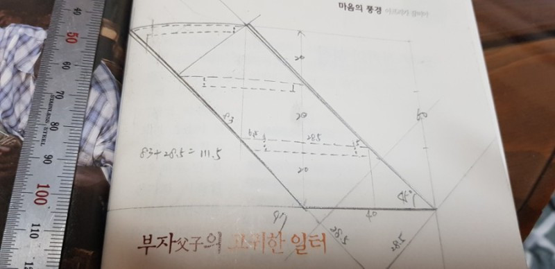 밤새 고민한 흔적... 45도 경사로 1/10 축소한 그림이다.