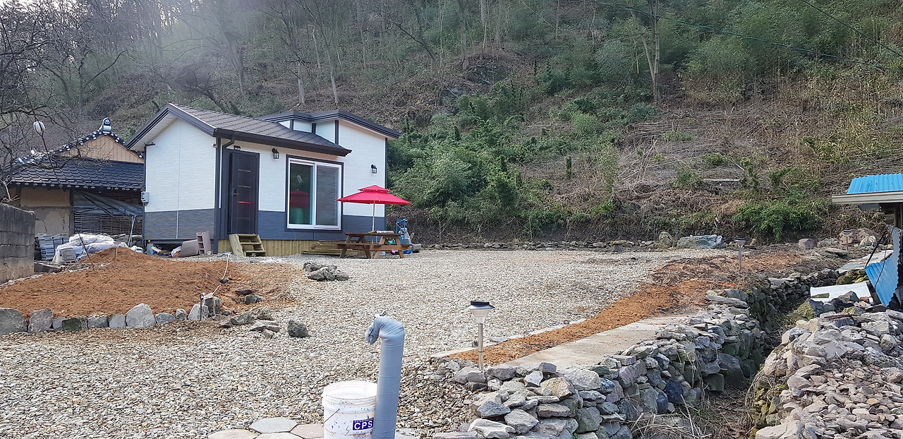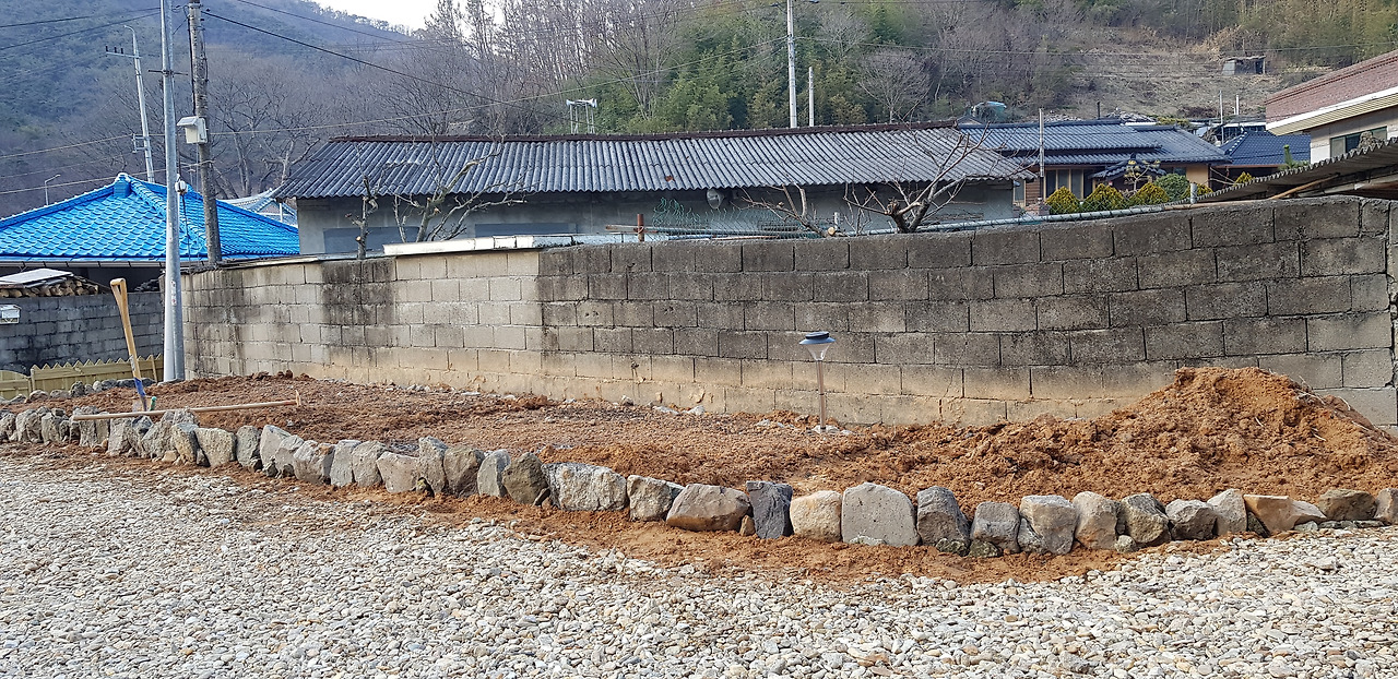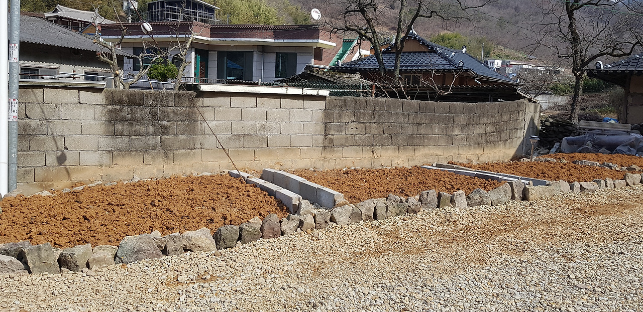 해놓고 보니 블록보다는 자연석 돌로 만든 게 훨씬 운치 있습니다. 처음부터 있던 돌을 할 건데 많이 아쉽습니다. 이왕 설치해놓은 블록 고랑을 돌로 교체하기엔 들어간 정성이 너무 아까워 다음 기회로 넘깁니다. 돌담 고랑의 운치를 보게 될 미래를 위해!