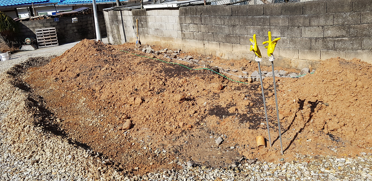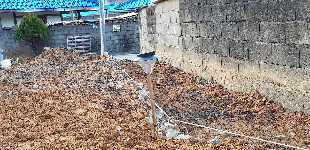 이제 텃밭이 성토하기 전처럼 모양새를 갖춰나가네요. 지난번에 설치하지 못한 나머지 정원등도 텃밭 경계에 설치합니다. 오후 5시인데 벌써 해는 서산으로 꼭꼭 숨어버리네요. 앞으로 고랑도 파야 하고 평탄 작업과 돌로 경계 표시도 해야 합니다. 농촌 일은 한꺼번에 한다고 끝날 일이 아닙니다. 몸이 뒷받침되지 않기 때문이죠. 조금씩 지속적으로 해야 합니다. 누가 쫓아오지 않기에 쉬엄쉬엄할 일입니다. 오늘은 겨울답지 않게 따뜻했습니다. 일할 때 입던 점퍼도 벗어던졌습니다. 이마에 땀이 줄줄 흘러 기온을 보니 20도입니다. 봄이 성큼 온 것 같아요. 하지만 주말에 눈이 온다네요. 올겨울 처음이자 마지막 눈이 될지도 모르겠어요.