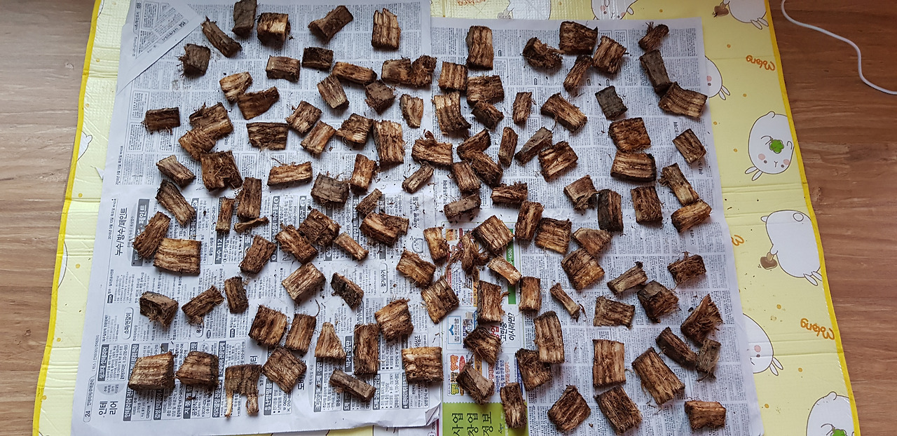 이웃이 준 칡뿌리를 지난번에 토막 내고 남은 걸 쪼갭니다. 잘게 톱질하고 칼로 조각내는데 칡 향기가 깊게 스며드네요. 말려서 차로 끓여 먹으면 참 좋습니다. 마실 때마다 나눔 해준 이웃이 생각나곤 합니다.