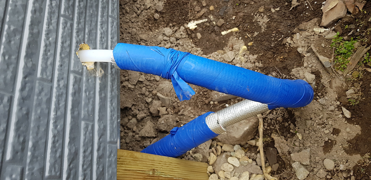 한김에 아지트의 고질병도 손봅니다. 아지트로 들어가는 수도관 일부가 밖에 노출되어 영하의 기온에 어는 경우가 있었습니다. 아지트에서 생활하며 난방을 할 때는 그렇지 않습니다. 엑셀 호스가 겉으로 드러난 곳은 우레탄 실리콘으로 마감합니다.