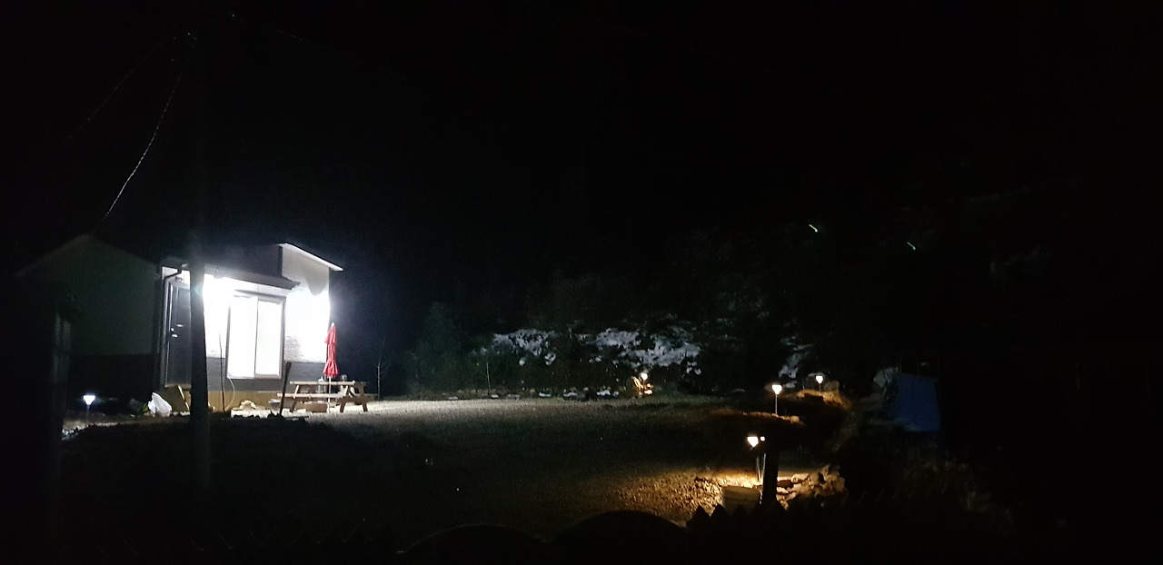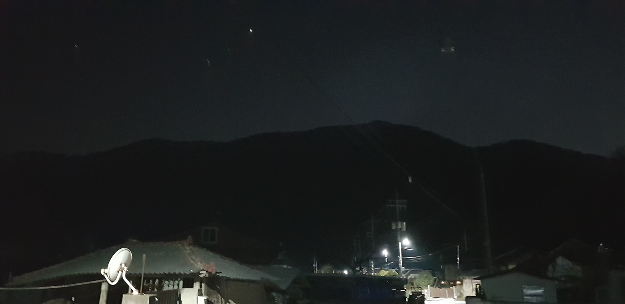 아지트에서 저녁을 먹고 어두워진 마당을 거닐며 고요함을 즐깁니다. 마눌님은 추위를 너무 타서 밖에 나올 엄두를 못 냅니다.