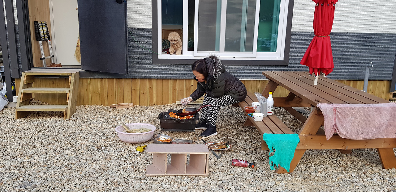 보기에도 훨씬 운치 있습니다. 마눌님도 솥에 장작불을 피우고 나서 이내 삽을 들고 동참합니다.