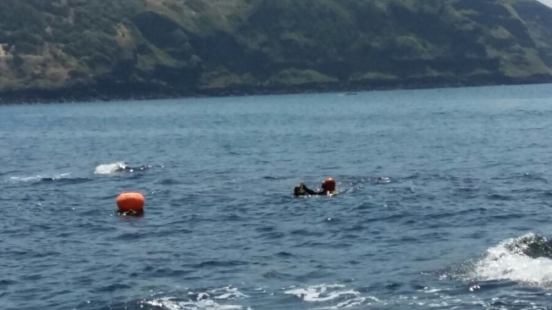 드디어 오늘 수월봉을 내려와 한적하게 걷는데 파란 바다 위에 테왁을 단 주홍빛 공 네댓 개가 둥둥 떠 있다. 해녀의 물질이다. 바로 돌과 바위를 넘나들면서 최대한 해녀 가까이 갔다. 펜이 오는 것도 아랑곳하지 않고 오직 물질뿐이다. 사진 찍다 동영상 찍다 제풀에 죽어 폰카를 내려놓는다.