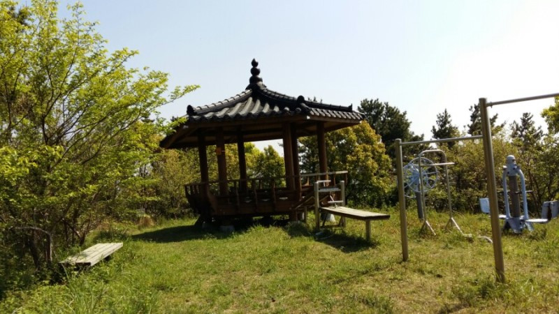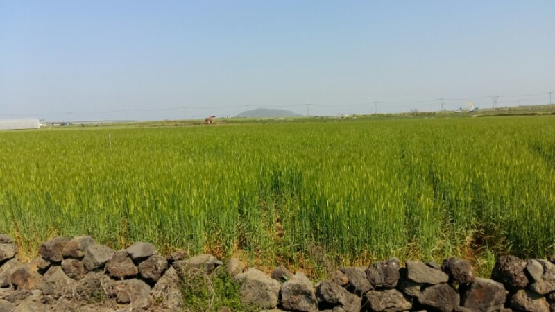 다시금 제주의 들판이 나타납니다. 푸르름이 너무 좋습니다. 넓은 들판의 초록 물감을 뿌려 놓은 것 같습니다. 푸른 들판과 예쁜 집을 보면서 산을 오릅니다. 산 정상에 인조 구조물이 나타납니다. 어제 본 모슬봉처럼. 수월봉 정상(78m)입니다. 가서 보니 군사시설은 아니고 '고산 기상대'입니다. 수월봉은 14,000년 전 뜨거운 마그마가 물을 만나 폭발적으로 분출하며 만든 고리 모양의 화산체입니다.
