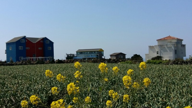 12코스에도 봄꽃이 만발합니다. 하늘을 보니 제비가 날아다닙니다. 참 오랜만에 봅니다. 도시에서는 보기 힘들지요. "지지배배~ 지지배배~" 끝도 없이 노래합니다. 얼마 만에 보고 듣는지 모르겠습니다. 마을에 올레객을 위한 주민 숙박지 '올레길 할망 숙소'가 나타납니다. 이런 숙소 체험도 하고 싶네요. 신도 고인옥 할망네 (010-7382-8890) 민박입니다. 제주의 농촌은 바쁩니다. 부부 농민이 농약치고 경운기에 나란히 앉아 가는 모습이 다정해 보입니다.