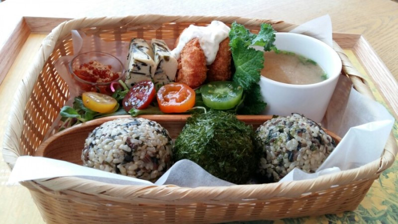14-1코스에서 점심이 가능한 곳은 이니스프리 제주 하우스밖에 없다. 청정 제주산 원료로 만든다는 해녀 바구니 브런치로 점심을 대신한다. 김가루 비슷한 것을 붙인 조그만 주먹밥 3개, 감자를 으깨 만든 돈가스 비슷한 것 2개, 야채샐러드와 된장국 한 컵이 전부다. 한 끼 식사로는 괜찮다. 가격은 만 육천 발.