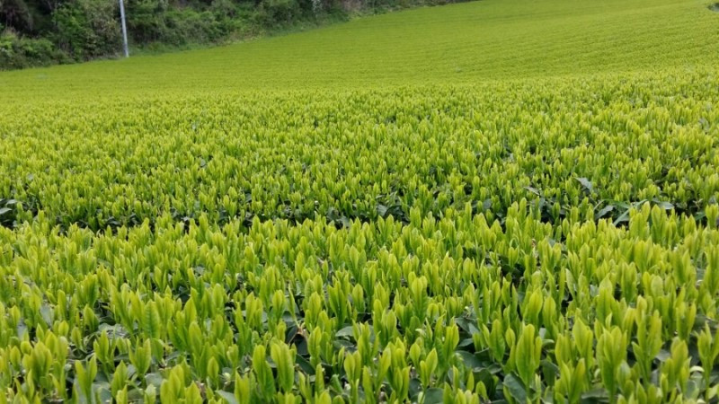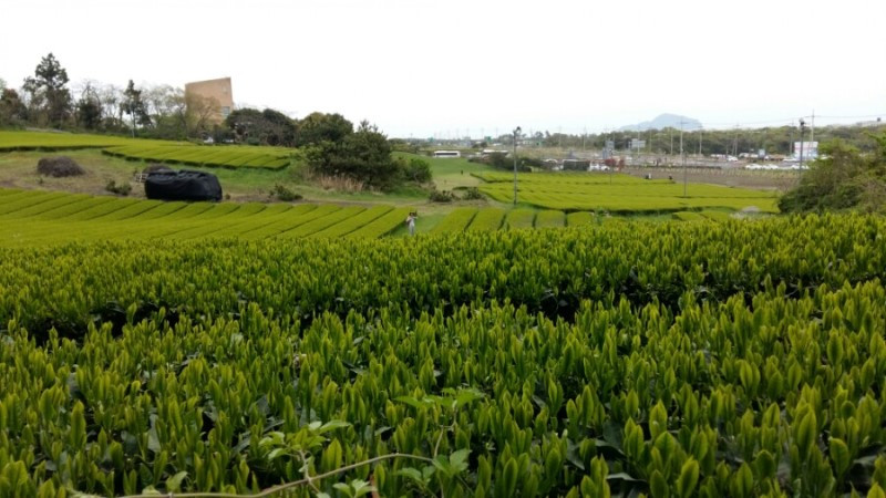 저지 곶자왈에 심취해 발길 이끈 대로 걷다 보면 갑자기 하늘이 환해지면서 녹차 밭이 나타난다. 바로 오설록이다. 시작점에서 출발한 지 3시간 만인 12:30분에 도착했다. 녹차 밭 입구 들어서는 곳에서 중간 스탬프를 찍는다. 연둣빛 새싹이 막 올라와 부드럽게 그려지는 곡선을 따라 자연히 셔터를 누를 수밖에 없다. 관광객은 여기저기서 모델과 사진작가가 된다. 연둣빛 푸르름에 하루 종일 눈이 행복하다.