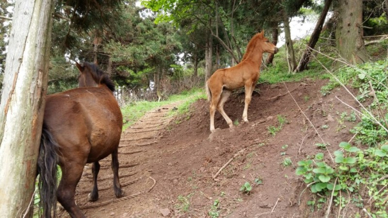 계속 따라와 펜이가 한쪽으로 피하니 큰 말이 망아지 옆에 딱 붙어 완전 부동자세다. 이제 보니 모자지간이었다. 망아지에 대한 엄마 말의 보호 본능이었다. 외길에서 오도 가도 못 하니 참 대책이 없다. 그래서 옆 담을 기어올라 겨우 오르막을 오르는데 어미 말이 망아지를 데리고 한쪽으로 비켜선다. 이 나이 먹도록 말을 멀리서 보거나 고삐에 묶인 말 옆에만 서봤지 네 발이 자유스러운 말에 주눅 들긴 또 처음이다.