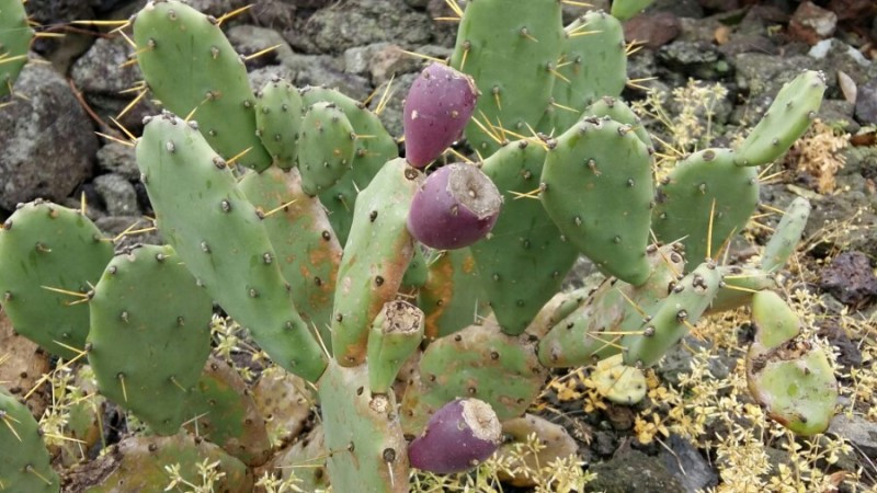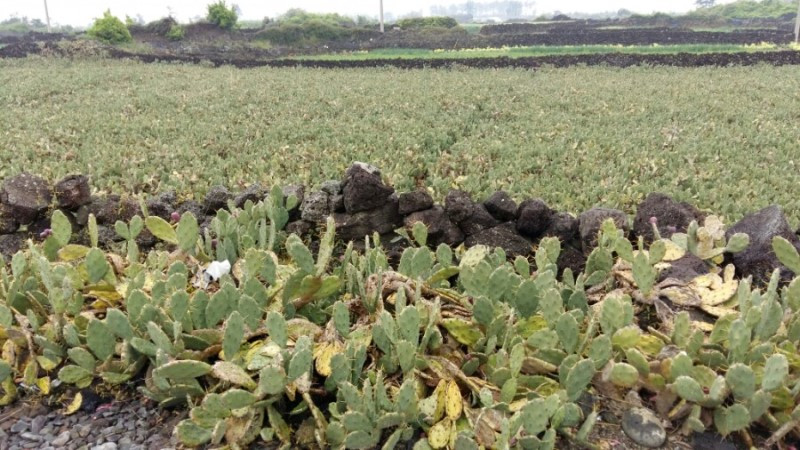 올레책에 저지에서 한림으로 이어지는 길에서 선인장과의 특별한 조우를 놓치지 말라고 했는데 올레 40분 만에 벌써 등장했다. 그래서 반가운 마음에 선인장에 붙은 빨간 열매를 땄다. 열매의 2~3mm의 작은 가시를 히피보고 손톱으로 껍질을 반쯤 벗겼다. 자줏빛 고운 색감에 먹음직스럽다. 한 입 베어 보니 약간 단맛에 알로에처럼 조금 끈적거림이 있다. 그대로 씹는데 포도 씨만 한 게 나온다. 별로 맛이 없어 일부 삼키고 일부 버렸다.