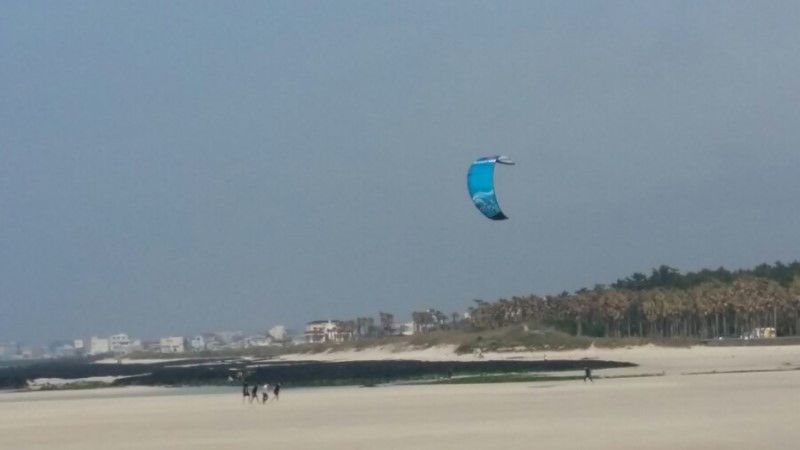 숲길이 끝나면 가슴을 뻥 뚫리는 뷰가 나온다. 월령 포구를 지나 금릉으뜸원 해변과 협재 해변의 에메랄드빛 바다와 하얀 떡고물 모래에 푹 빠져 행복감마저 든다. 행글라이더에 서핑을 즐기는 젊은이들 모습에 입이 짜악 벌어진다. '어쩌면 저리 잘 탈까~' 이름하여 '카이트 서핑'이란다.