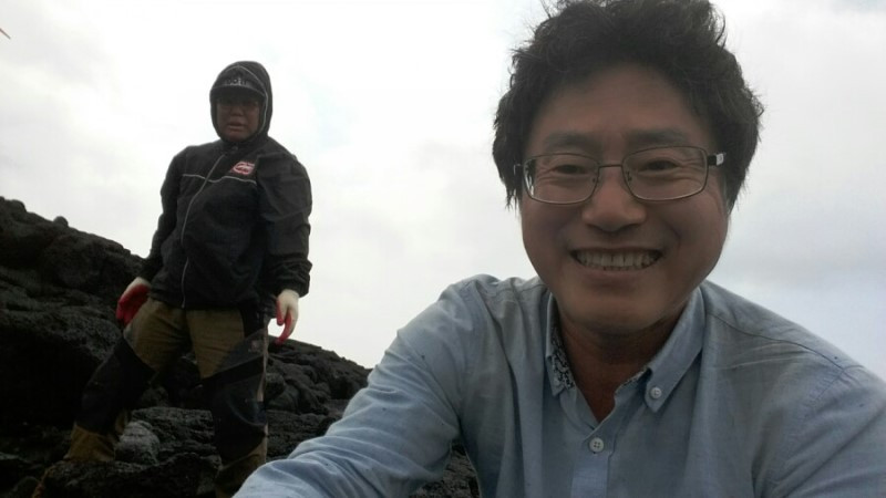 보말 체험 왕초보다. 김 여사도 운전 배울 때 들치기 박치기하지 않던가! 폰카 끼운 셀카봉 한 손에 쥐고 돌 굴리며 열심히 보말을 잡는데... 갑자기 핸드폰과 셀카봉이 분리되는 사태가 벌어졌다. 한국전쟁 이후 처음 있는 일이다. 갑자기 달그락 소리에 놀라 소리 나는 곳을 보니 이미 아뿔싸ㅜㅜ 펜이의 분신과 같은 핸드폰은 바닷물에 발을 담갔다. 다행히 완전히 빠지지는 않았다.