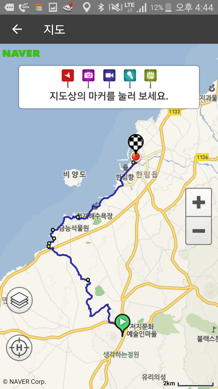 스마트폰은 올레를 안내하는 길잡이요(펜이는 지도 앱을 켜고 위치를 잡는다. 제주올레가 파란 점선으로 안내된다), 음악을 듣고, 라디오를 듣고, 기록을 남기고, 숙박지를 예약하고, 체크카드 잔고 점검과 각종 여행 정보를 제공하는 만물박사다. 그리고 이렇게 여행기를 올리는 블로거의 필수품이다.
