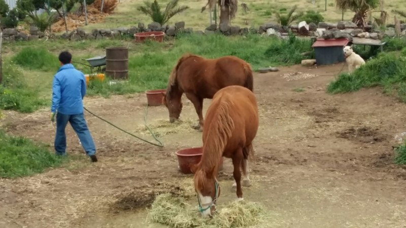 올레에 여러 개의 시비가 있는 길을 따라 걷는데 말 사육장이 나옵니다. 펜이가 고개를 내미니 관심이 있는 녀석이 다가옵니다. 며칠 전 14-1코스 문도지 오름에서 방목 중인 말 때문에 식겁했던 순간이 떠오릅니다. 이제는 울타리가 있어서 마음 졸일 필요가 없습니다. 울타리 밖 풀을 뜯어 주니 잘 받아먹습니다. 이 모습을 본 왕초격의 말이 와서 조금 전 그 말을 밀어내고 펜이 앞에서 고개를 내 미며 아양을 떱니다. 그래서 풀을 몇 번 뜯어 주었지요. 처음 만난 녀석에 미안해서 다시 첫 녀석에게 풀을 가져다주니 늦게 온 녀석이 히잉~ 소리를 지르며 쫓아내고 맙니다. 그러자 처음 녀석이 줄행랑을 칩니다. 서열이 확실히 있음을 알게 되었습니다.