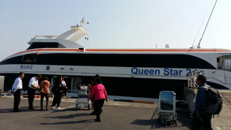 숙소에서 걸어서 10분 거리, 제주항연안여객터미널에서 씨월드고속훼리사의 퀸스타 2호가 09:30분에 출발합니다. 휴일이라 거의 만석입니다. 황금연휴 때문에 며칠 전 예약했습니다. 애초 10:30분 상추자도에 도착할 계획이었으나 파도 때문에 20여 분 지연됩니다. 이 배는 11:00에 해남 우수영으로 다시 출발합니다. 선원이 파도가 다소 높아 뱃멀미할 수 있다며 미리 주의를 당부합니다. 2009년 포항에서 울릉도 갈 때 너울성 파도를 만나 고생한 적이 있어서 심히 우려했습니다. 그냥 아무것도 하지 않고 조용히 눈을 감고 있었더니 우려했던 멀미 없이 무사히 도착합니다.