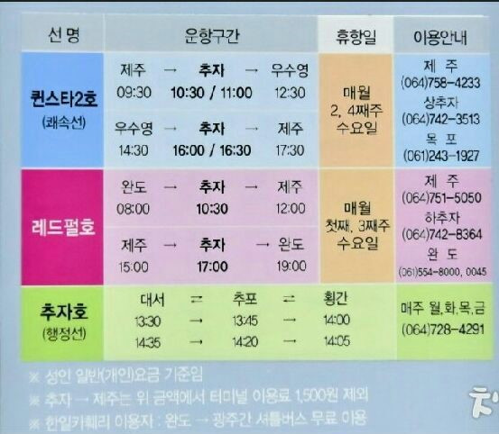 추자도 뱃삯 13,400