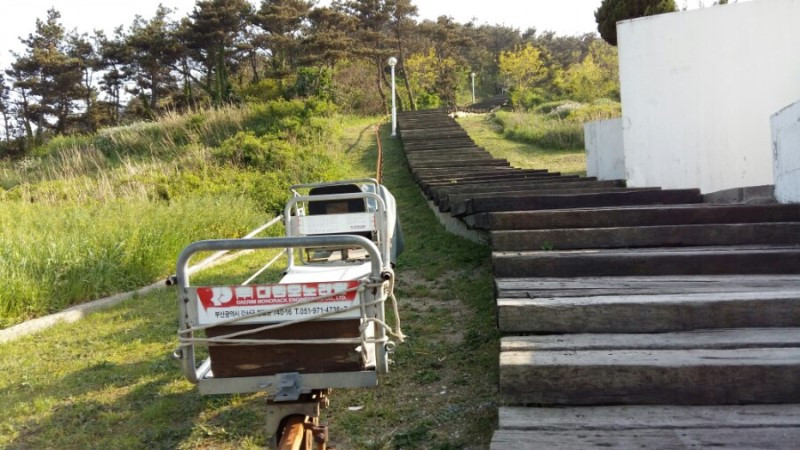 가까스로 마지막 봉우리 추자 등대에 도착합니다. 목을 축이고 무의식 속에 나무계단을 내려옵니다. 거의 수백 개가 될 것 같습니다. 모든 에너지가 바닥납니다. 오죽했으면 등대까지 모노레일을 설치했을까요...