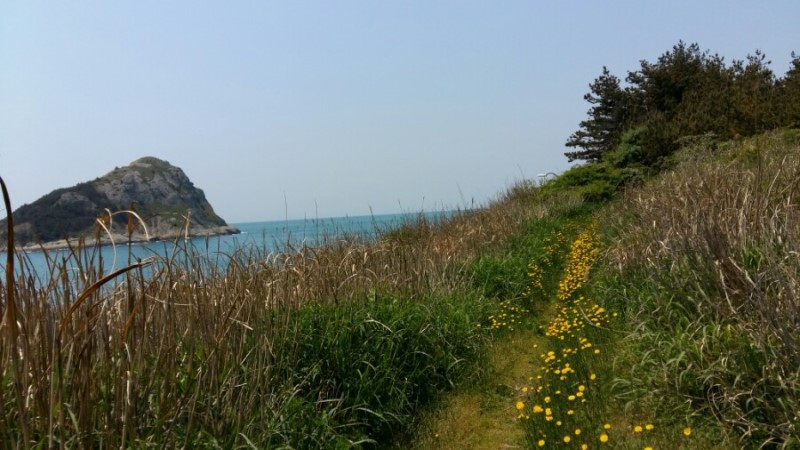 상추자도 항구에서 출발 스탬프를 찍고 항구를 한 바퀴 눈에 담습니다. 꽤 마을이 큽니다. 추자초등학교 뒤에 있는 최영 장군 사당을 거쳐 바로 산행이 시작됩니다. 추자도 올레는 산행코스입니다. 올레책을 보면 오르락내리락을 무려 여덟 번 합니다. 높은 산은 아니지만 여러 번 급경사가 나오다 평지가 나오다 반복됩니다.