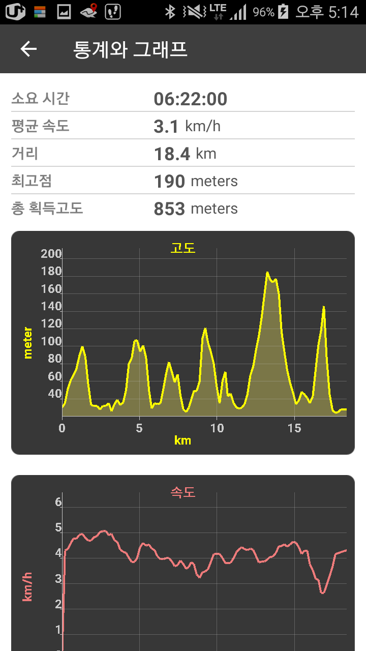 거기다 아스팔트와 콘크리트 길이 상당히 긴 구간도 있어 있는 힘이 다 빠집니다. 완주하고 숙소에 도착할 때는 거의 그로기 상태입니다. 아마 점심을 제대로 못 먹은 탓도 있었겠지요.