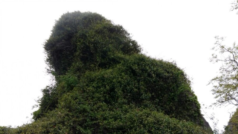 해무에 도취해 눈을 뜨니 앞에 떡하고 버티는 녀석이 있습니다. 큰 몸집에 마삭줄을 잔뜩 뒤집어쓴 채 말입니다. '애기 업은 돌'입니다. 정면에서는 몰랐는데 옆에서 보니 딱 그 자세입니다. 고기 잡으러 간 남편이 풍랑을 만나 돌아오지 않자 애기 업고 기다리다 망부석이 됐다는 전설입니다. 가슴이 아련해집니다. 왼쪽은 바다요, 오른쪽은 산자락이라 해무로 곁들인 컬러판 동양화가 한눈에 펼쳐집니다.